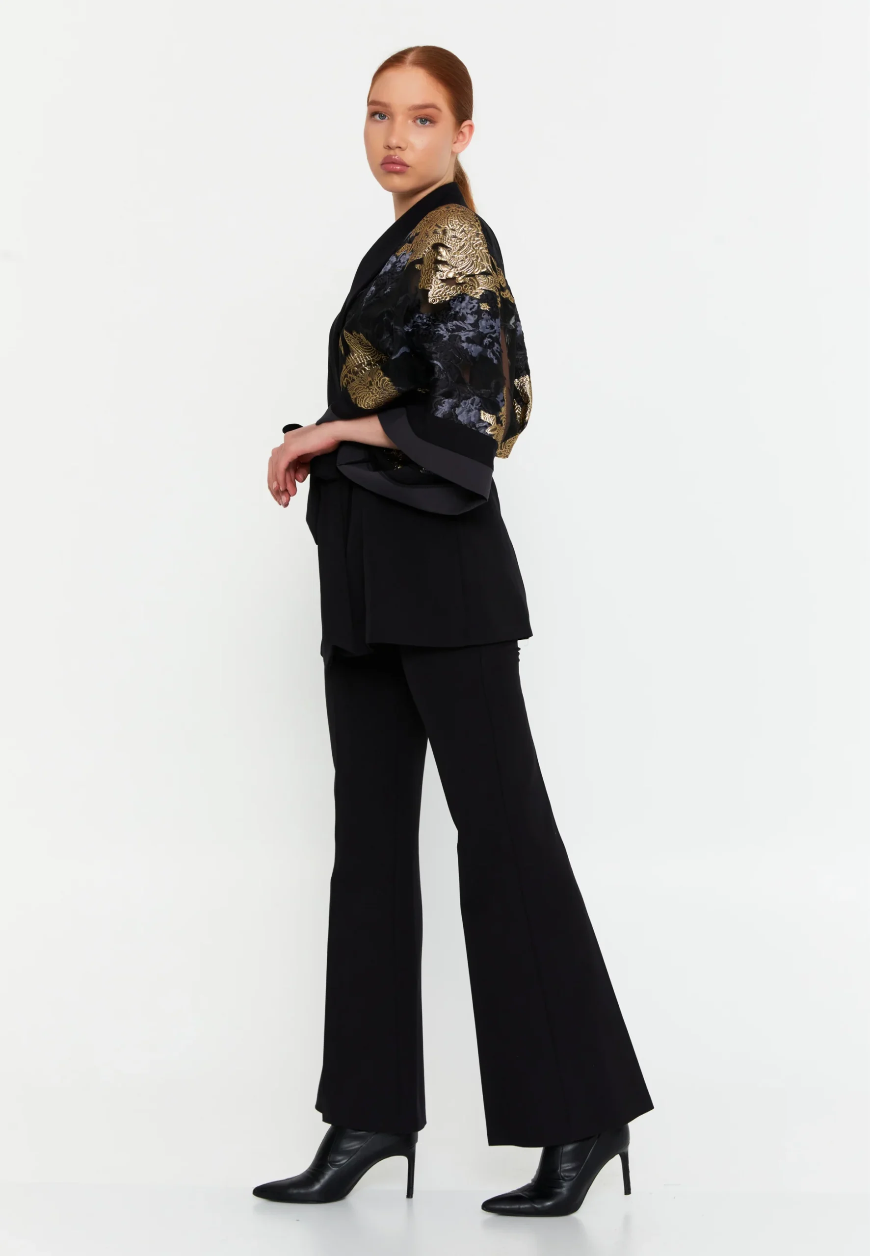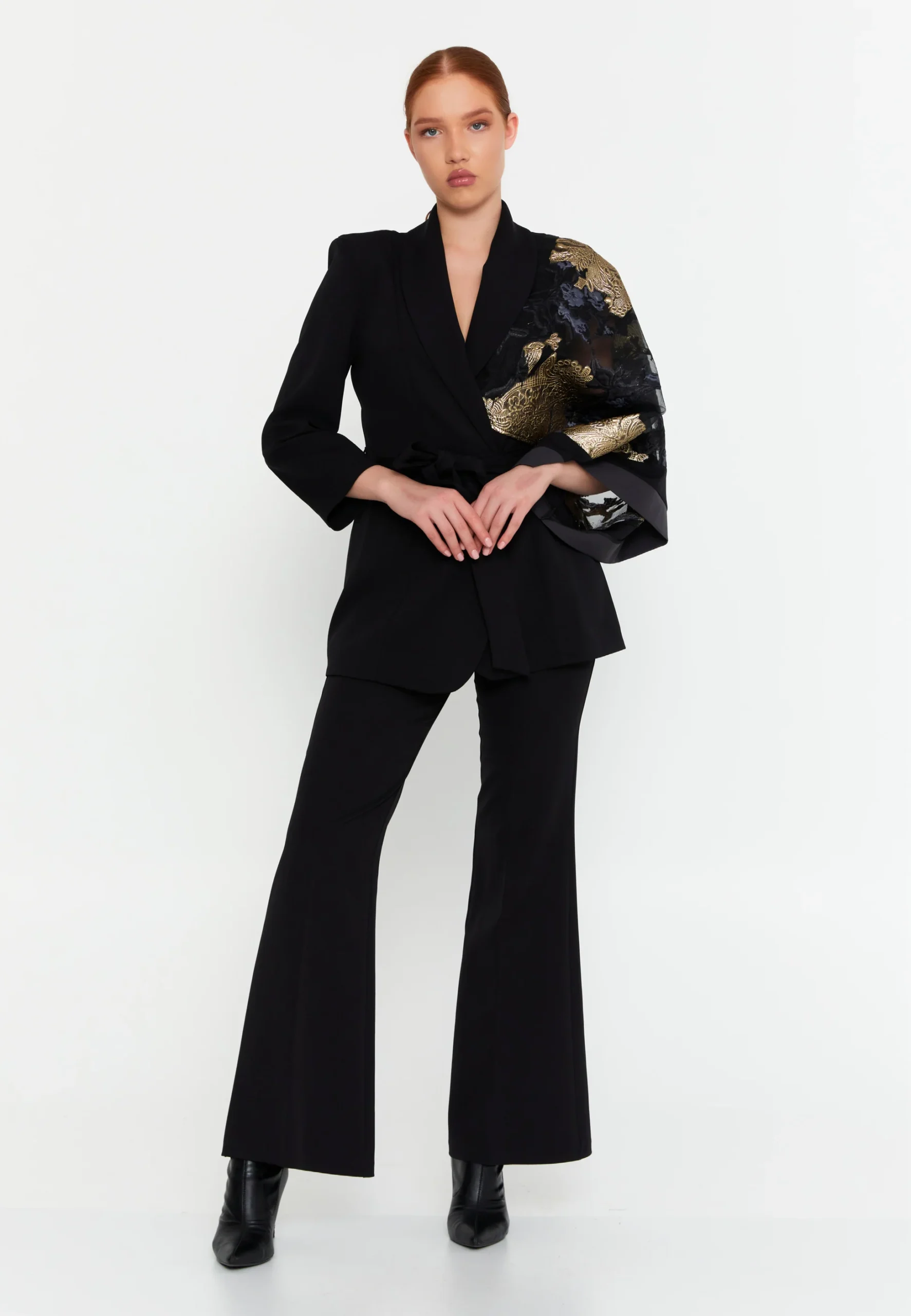 39-MNT6203 / Golden Long Sleeve Patterned Regular Jacket Set /طقم جاكيت ذهبي بأكمام طويلة بنقوش عادية