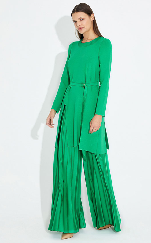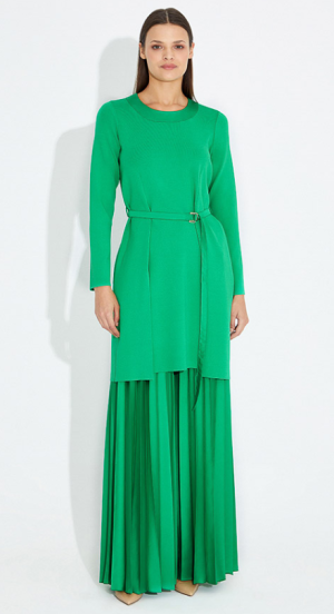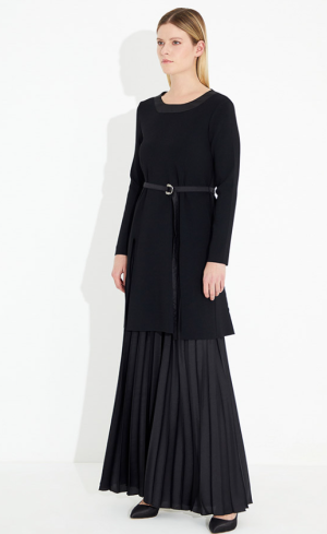 T23Y-6026 / Knitwear Tunic with Fabric Waist Belt / تونيك تريكو مع حزام خصر من القماش