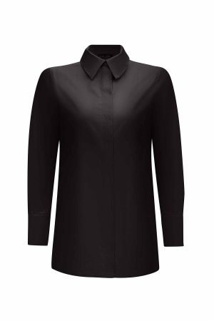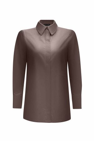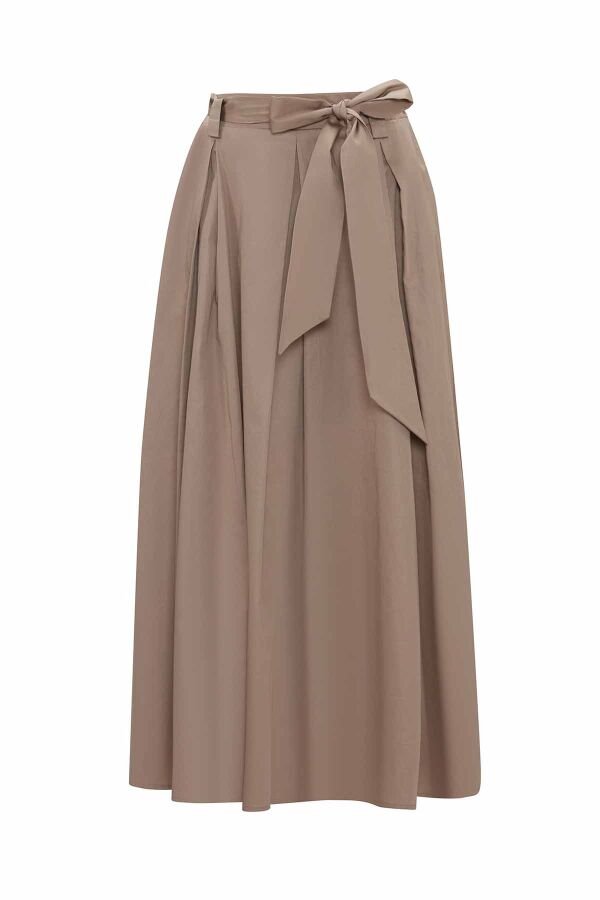 T25Y-3011 / Hidden Placket Poplin Shirt with Belted Waist Relaxed Cut Skirt Set / طقم قميص بوبلين مخفي مع تنورة بقصّة مريحة مع حزام على الخصر