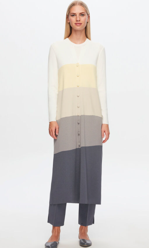 T24Y-8031 / Striped Knitwear Garnished Linen Jacket Set / طقم جاكيت من الكتان المزخرف ثلاثي الأبعاد