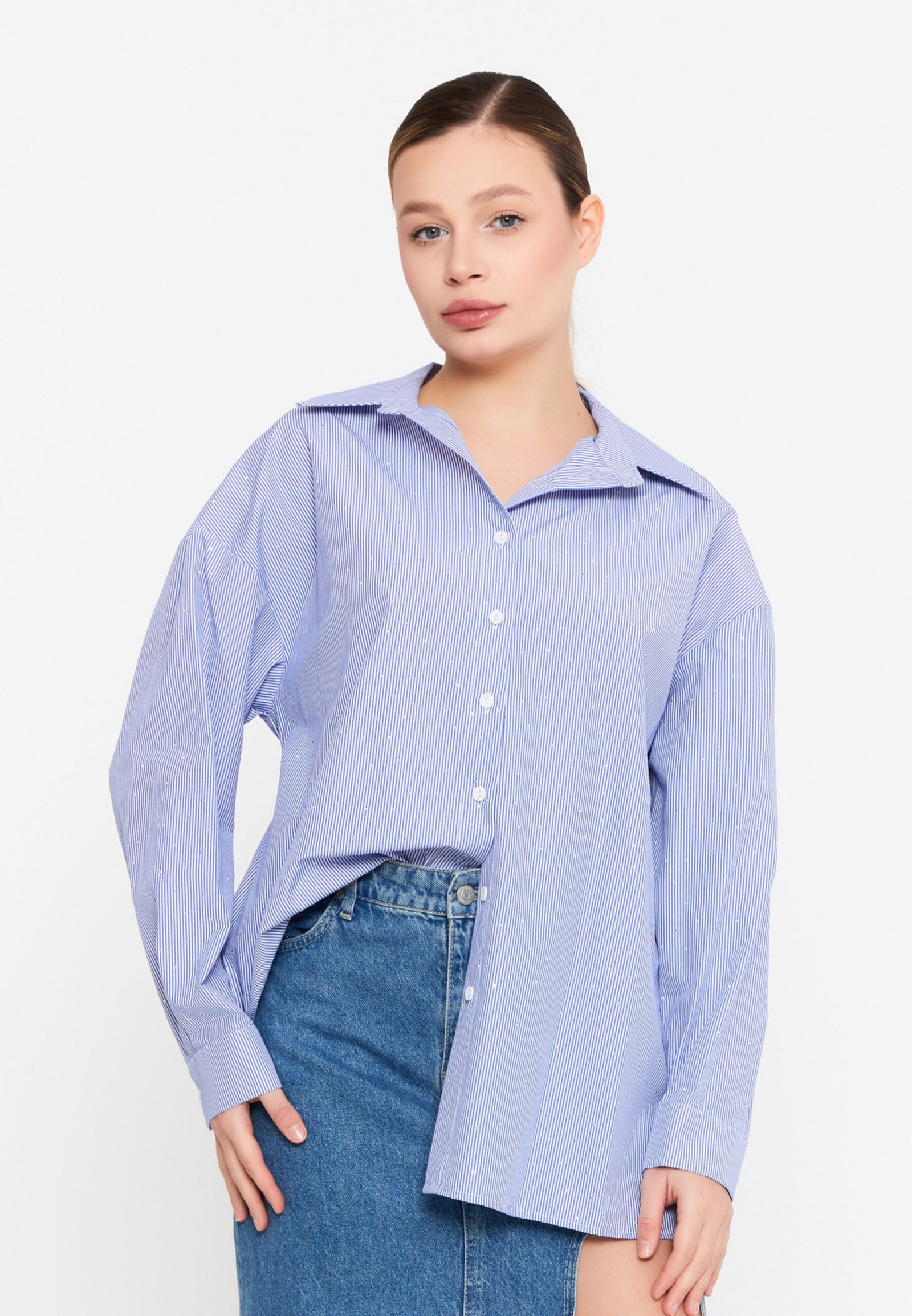 HomeShirtONN215 / Long-Sleeved Shirt Decorated with Small Crystals / قميص بأكمام طويلة مزينبكريستال صغير