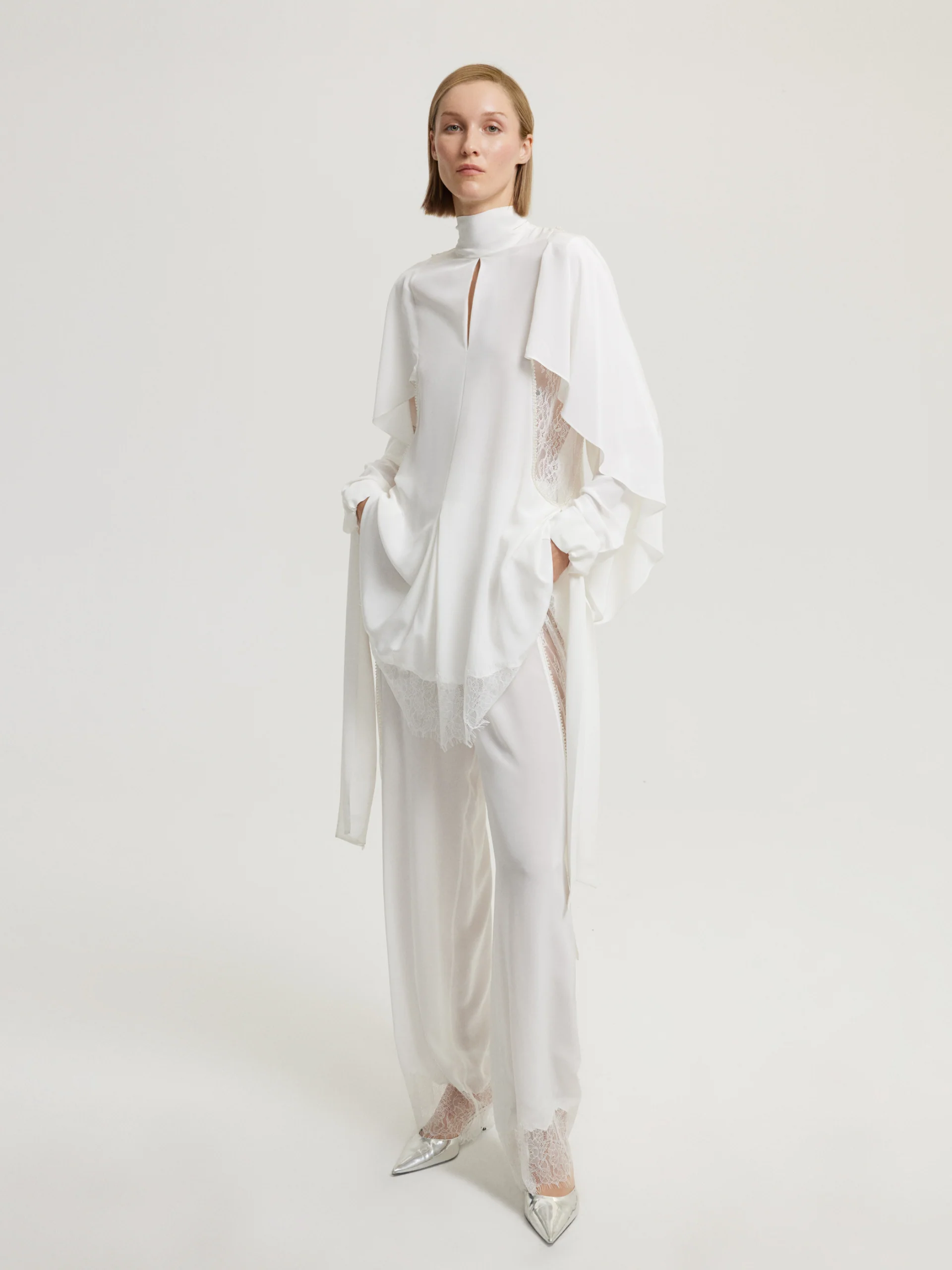 QS2544061 / Blouse and Tie Set with Pearl Details / طقم بلوزة بربطة عنق مزين بتفاصيل من اللؤلؤ