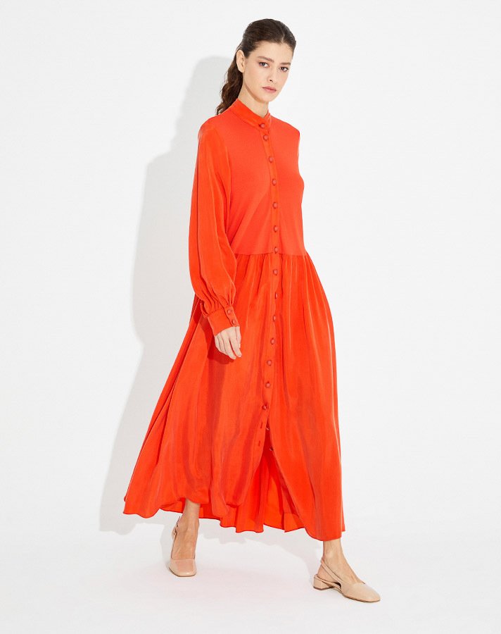 T23Y-4021 / Matte Buttoned Knitwear Cupro Dress / فستان كوبرو محبوك بأزرار غير لامع