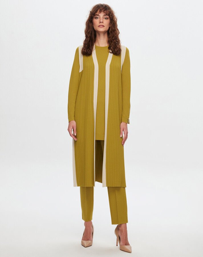 T24Y-1002/ Color Detailed Long Knitwear Vest/سترة تريكو طويلة ملونةمفصلة