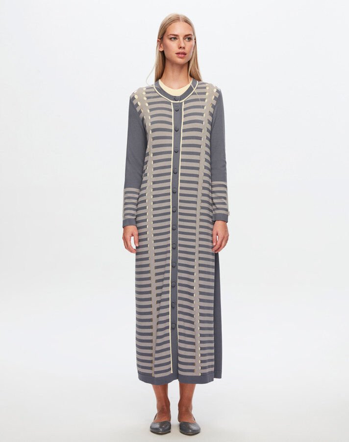 T24Y-9011 / Long Cardigan with Line and Openwork Detail Set / طقم كارديجان طويل بخطوط وتفاصيل مخرمة