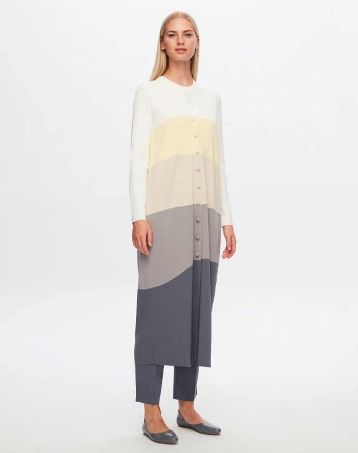 T24Y-9500 / Color Blocked Long Cardigan Set / طقم كارديجان طويل بألوان متعددة