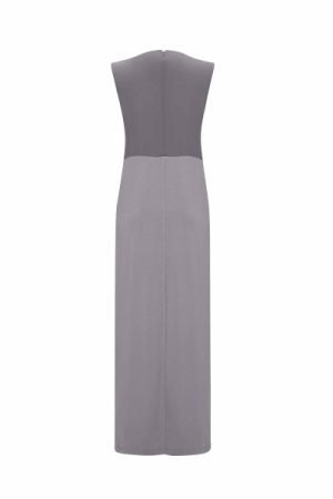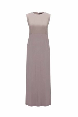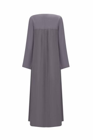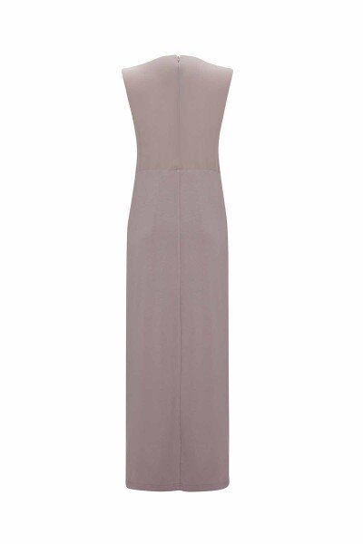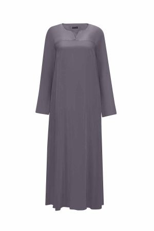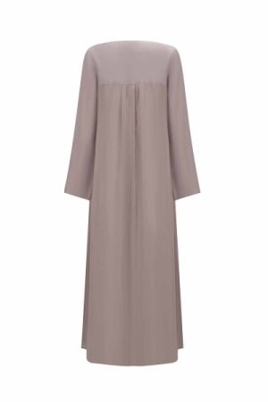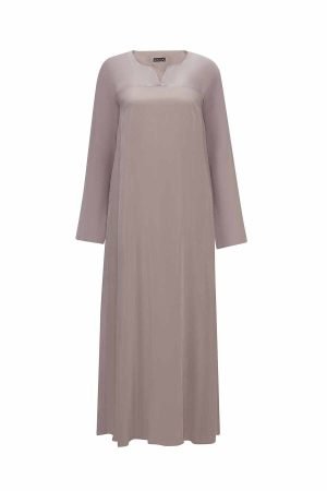 T25Y-4062 / Comfortable Cut Linen Detailed Cupro Dress / فستان كوبرو مريح بقصّة كتان مفصّل