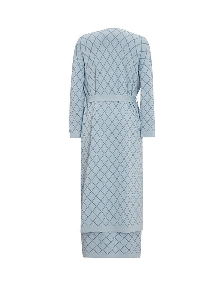 T25Y-0019/ Diamond Patterned Long Knitted Cardigan Set / كارديجان طويل محبوك بنقوش ماسية