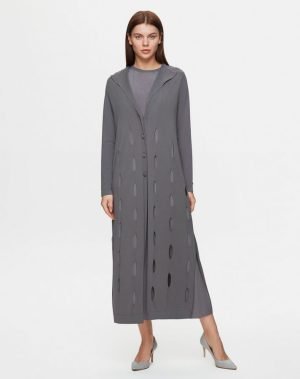 T25Y-9007/ Self – Perforated Long Knitwear Cardigan with Dress Set / طقم كارديجان طويل محبوك مثقوب ذاتيًا مع فستان