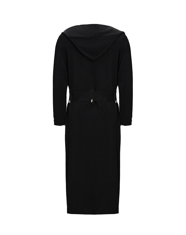 T25Y-9100 / Solid Collar Cardigan with Belt Loops / كارديجان بياقة سادة مع حلقات للحزام