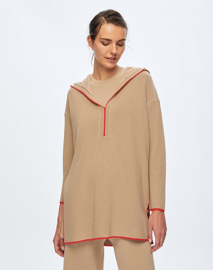 T24K-6004 / Thessaloniki Knitted Hooded Tunic /سترة ثيسالونيكي محبوكة بغطاء للرأس